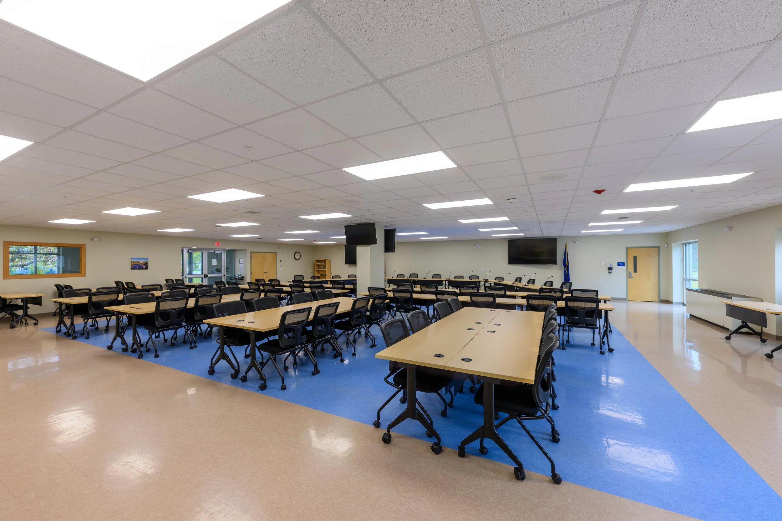 THE KEARSARGE REGIONAL SCHOOL DISTRICT was established in 1967 and serves seven towns within the Lake Sunapee Region of New Hampshire. These communities are spread over a broad geographical and topographical area of nearly 470 square miles, serving approximately 1800 students. Within the district, there has been an ongoing desire for spaces adequate for meetings, seminars, and continuing education for the district staff and area residents. The Kearsarge Learning Campus provides diverse seating for both large and small groups in which to hold these types of functions.