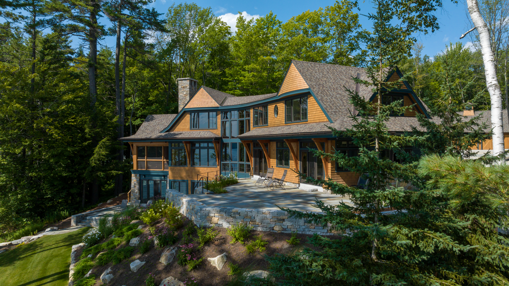 Over the past 2 decades, environmental responsibility and stewardship have become a hallmark of lakeside building and this project is no different. Several tactics to manage stormwater runoff are employed at this site to protect the water quality of Lake Sunapee including the use of pervious pavers, infiltration and collection drip edges, dry wells, and a bio-retention garden filled with native riparian plant species.