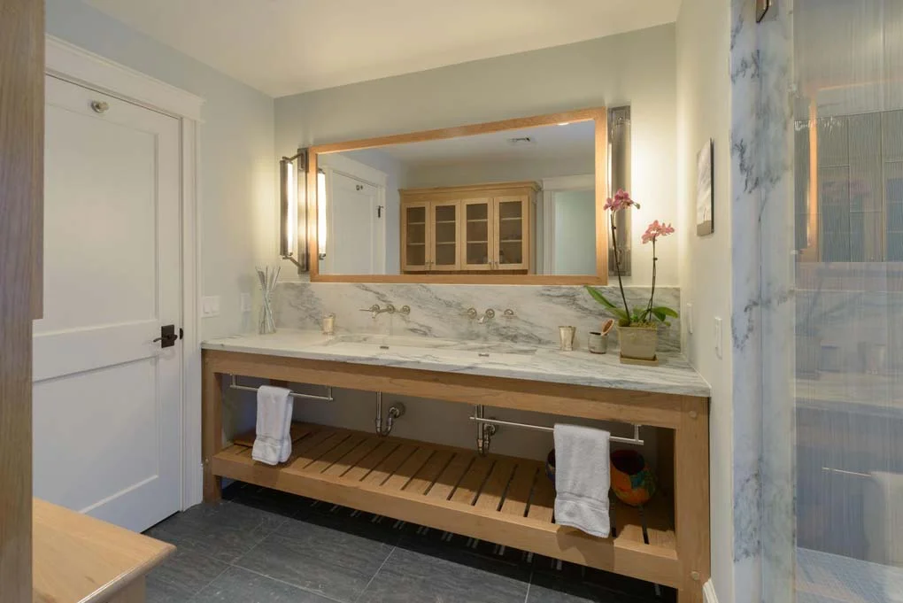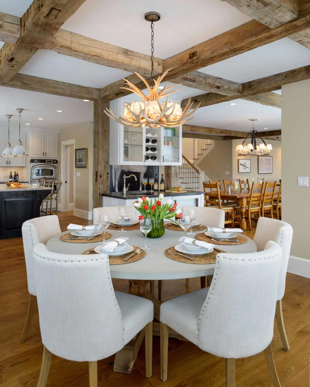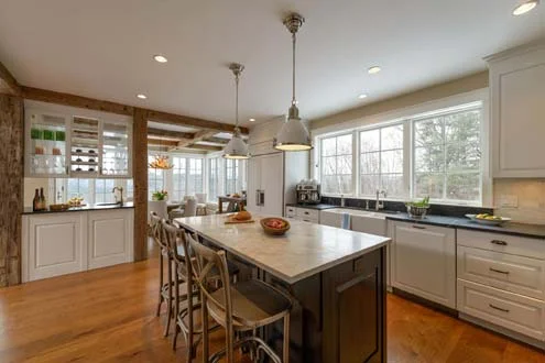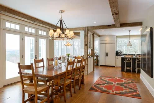 THIS VACATION HOME with its proximity to skiing, and fantastic property for year-round outdoor activities, is perfect for this young and active family. The casual warmth and comfort of the reclaimed wood floors and timbers, fieldstone fireplace, light warm colors, clean details and open spaces all contribute to the transformation of this home; bringing a brighter and more casual setting while addressing flow and functionality when the home fills with family and friends!